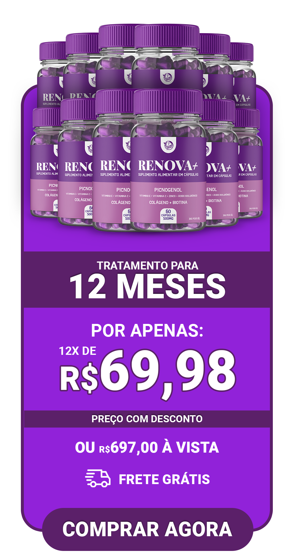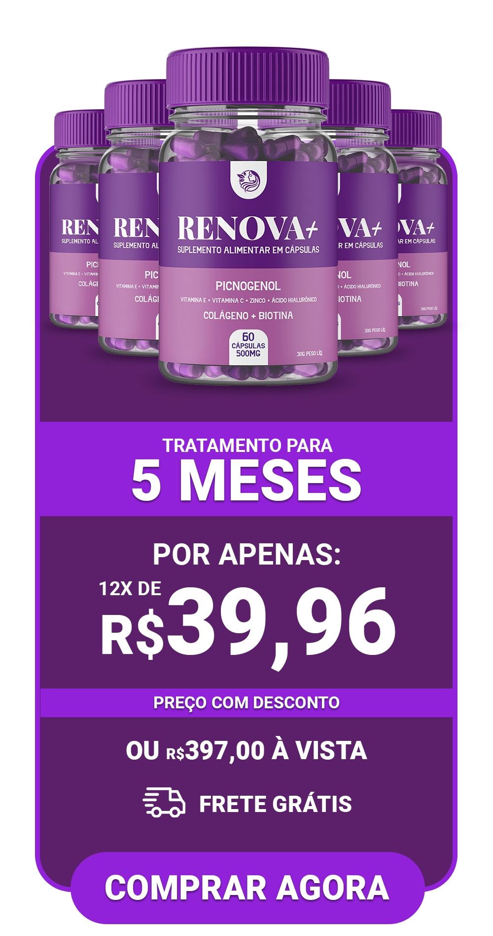 RENOVA+ se destaca no mercado de suplementos de beleza por sua fórmula exclusiva com Picnogenol, um poderoso antioxidante e anti-inflamatório, que protege e revitaliza a pele.